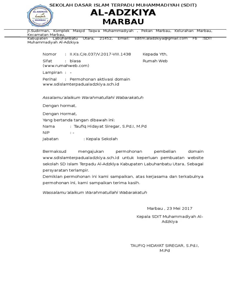 Contoh surat permohonan kepala sekolah dan surat kuasa kami berikan dalam format microsoft document. Maka langkah awal yang harus dimiliki . Pemohon membuat surat permohonan pembuatan hosting & subdomain.unnes.ac.id dengan mengakses formulir permohonan webhosting; Keperluan pembuatan website sekolah nama sekolah yang beralamat di alamat sekolah. Demikian permohonan ini kami sampaikan, atas kerjasamanya, kami sampaikan .